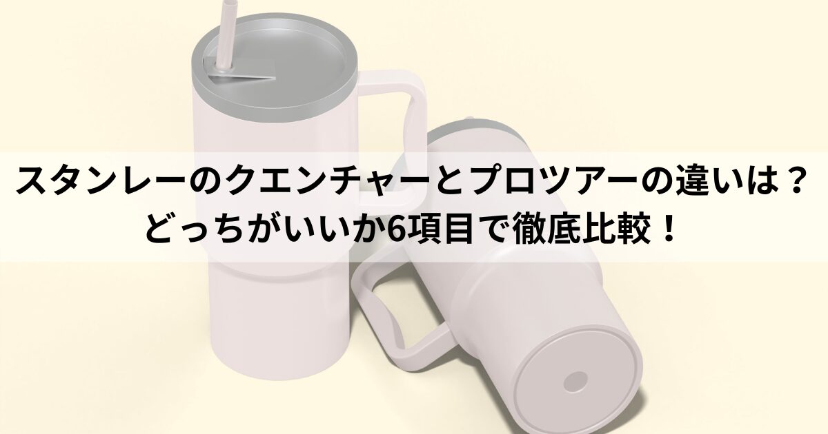 この記事ではスタンレー(STANLEY)のクエンチャーとプロツアーの違いについて解説しています。 スタンレーのクエンチャーとプロツアーのどっちがいいか、6項目で徹底比較しました。 結論から言うと、飲みやすさや価格を重視する人はクエンチャーを、持ち... -